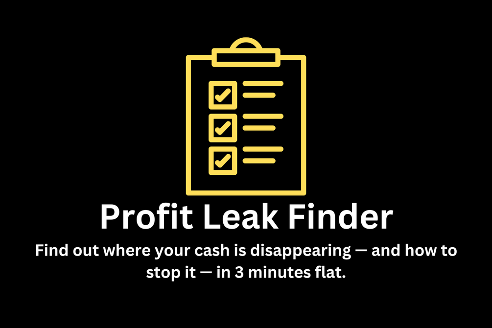 The Profit Leak Finder™ is a free 3-in-1 diagnostic tool for B2B coaches and service-based owners doing $500K–$5M who are making decent money…but not keeping enough.